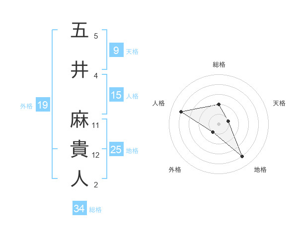 五井 麻貴人さんを姓名の画数から五運を鑑定