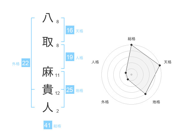 八取 麻貴人さんの外格は22画の1点!