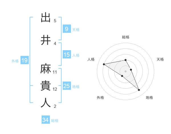 出井 麻貴人さんの地格は25画の4点!