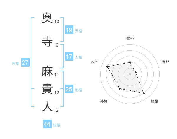 奥寺 麻貴人さんの総格は44画の2点!