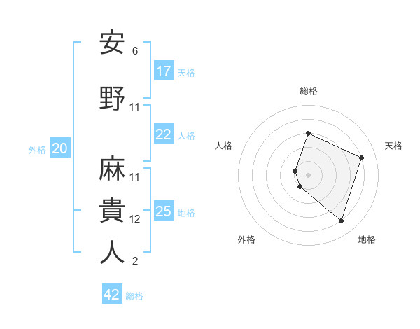 安野 麻貴人さんを姓名の画数から五運を鑑定