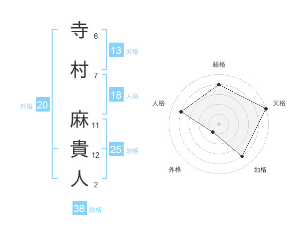 寺村 麻貴人さんを姓名の画数から五運を鑑定