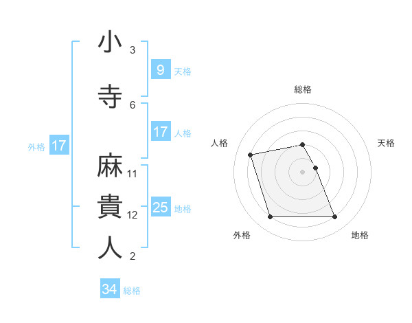 小寺 麻貴人さんの総格は34画の2点!