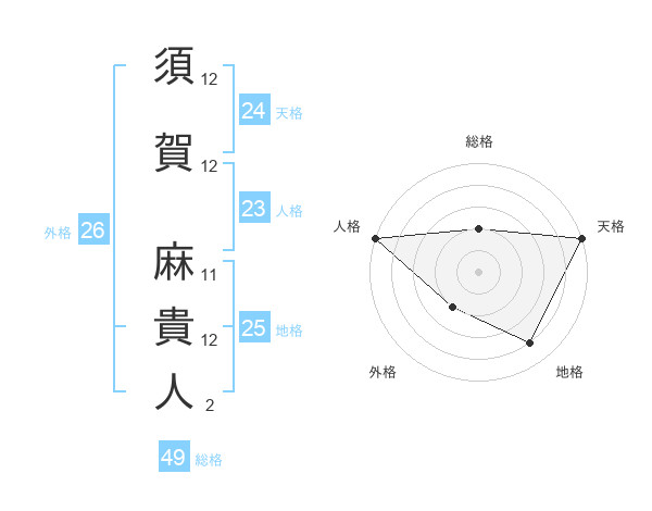 須賀 麻貴人さんを姓名の画数から五運を鑑定