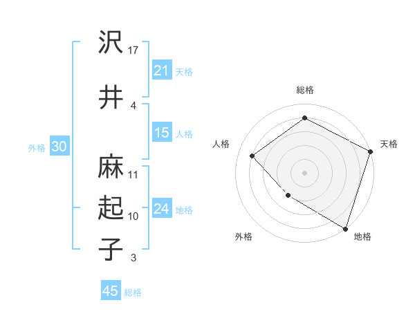 沢井 麻起子さんの天格は21画の5点!