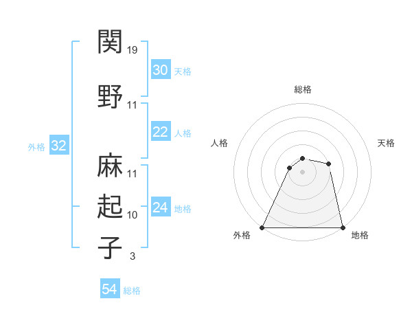 関野 麻起子さんを姓名の画数から五運を鑑定