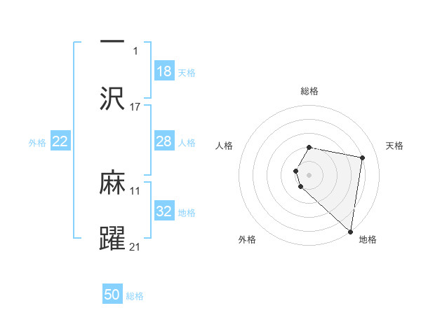 一沢 麻躍さんの総格は50画の2点!