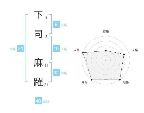 下司 麻躍さんを姓名の画数から五運を鑑定