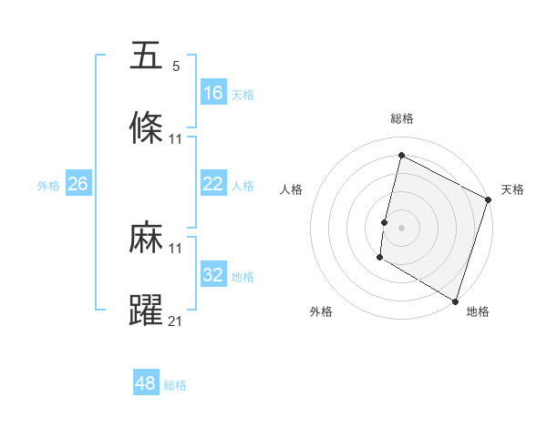 五條 麻躍さんの総格は48画の4点!