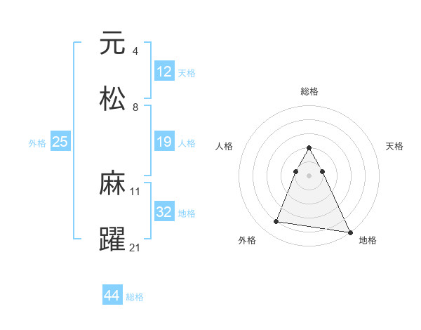元松 麻躍さんの総格は44画の2点!