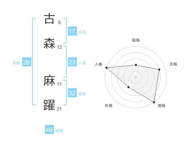古森 麻躍さんの天格は17画の4点!