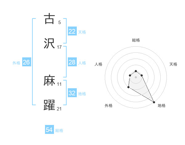 古沢 麻躍さんの総格は54画の1点!