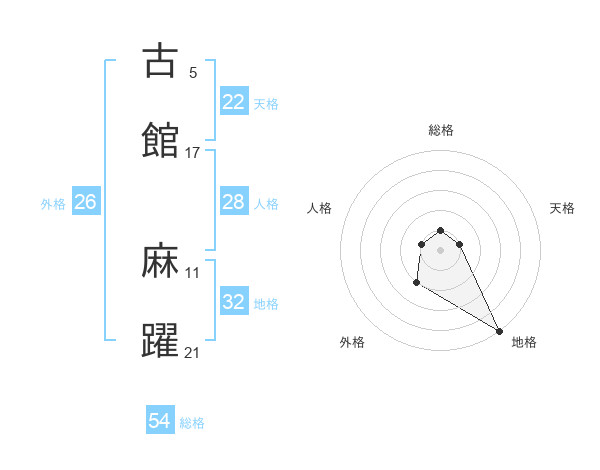 古館 麻躍さんを姓名の画数から五運を鑑定