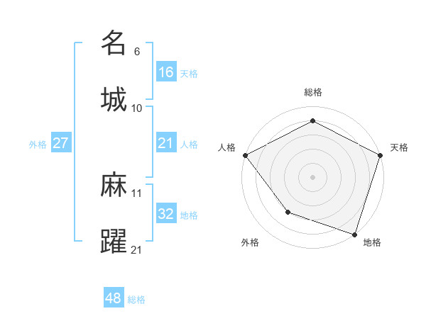 名城 麻躍さんを姓名の画数から五運を鑑定