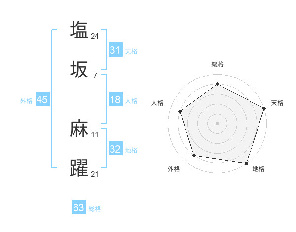 塩坂 麻躍さんの総格は63画の4点!
