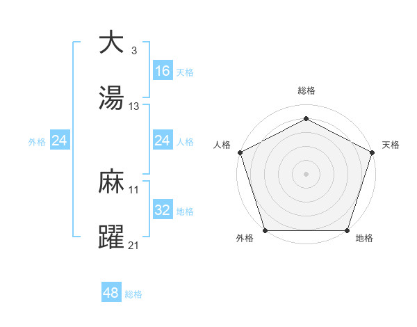 大湯 麻躍さんの天格は16画の5点!