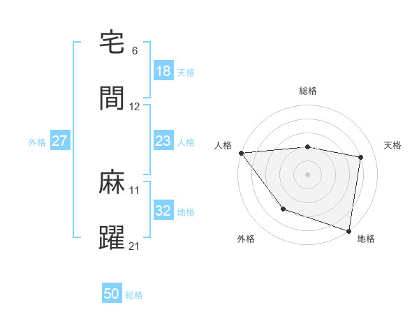 宅間 麻躍さんを姓名の画数から五運を鑑定