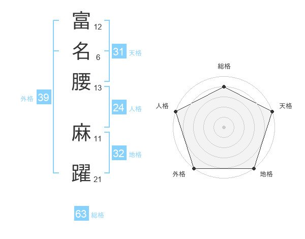 富名腰 麻躍さんを姓名の画数から五運を鑑定