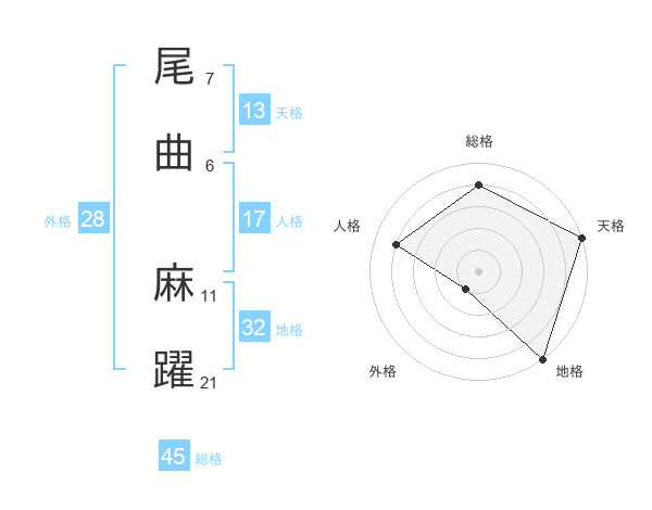尾曲 麻躍さんを姓名の画数から五運を鑑定