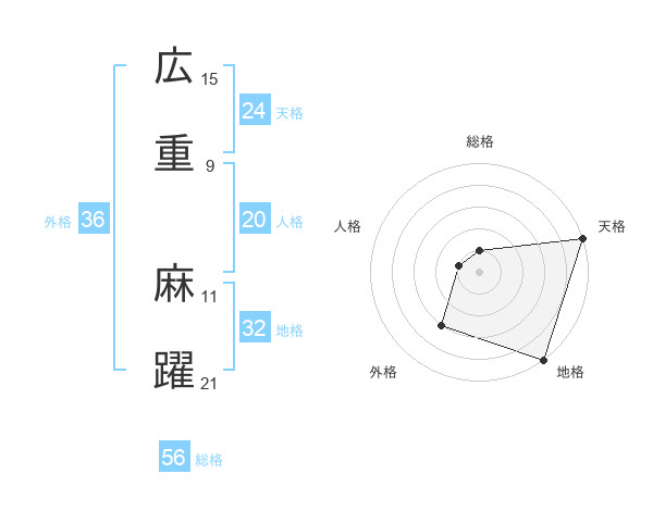 広重 麻躍さんの天格は24画の5点!