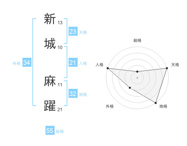 新城 麻躍さんの天格は23画の5点!
