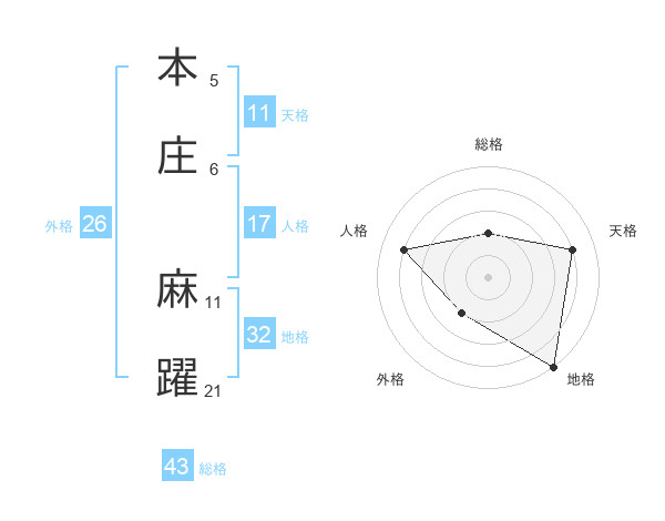 本庄 麻躍さんの総格は43画の2点!