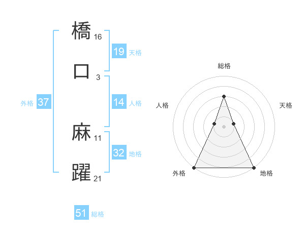 橋口 麻躍さんの総格は51画の3点!