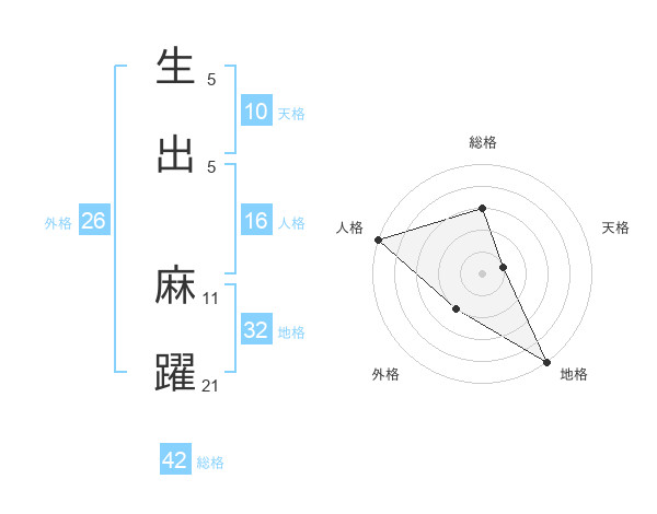 生出 麻躍さんを姓名の画数から五運を鑑定