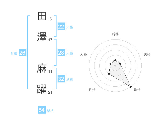 田澤 麻躍さんを姓名の画数から五運を鑑定
