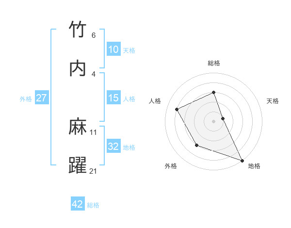 竹内 麻躍さんを姓名の画数から五運を鑑定