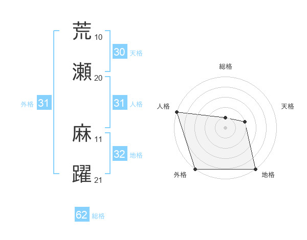 荒瀬 麻躍さんを姓名の画数から五運を鑑定