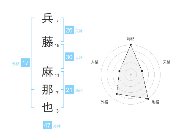 兵藤 麻那也さんを姓名の画数から五運を鑑定