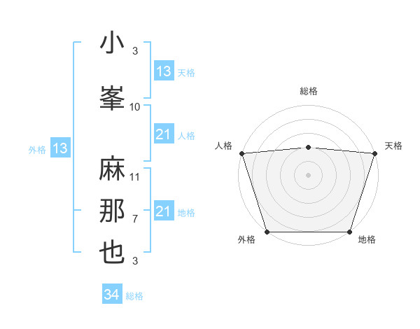 小峯 麻那也さんの天格は13画の5点!