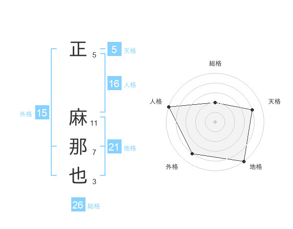 正 麻那也さんの天格は5画の4点!