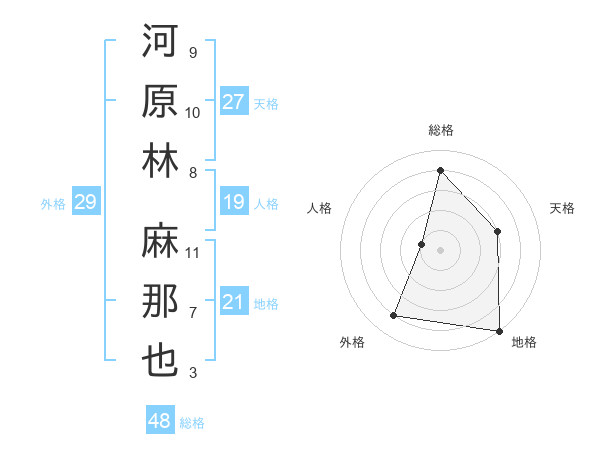 河原林 麻那也さんを姓名の画数から五運を鑑定