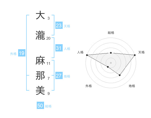 大瀧 麻那美さんを姓名の画数から五運を鑑定