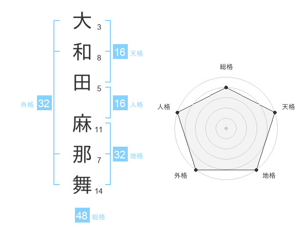 大和田 麻那舞さんを姓名の画数から五運を鑑定