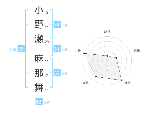 小野瀬 麻那舞さんを姓名の画数から五運を鑑定