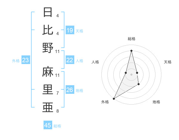 日比野 麻里亜さんを姓名の画数から五運を鑑定