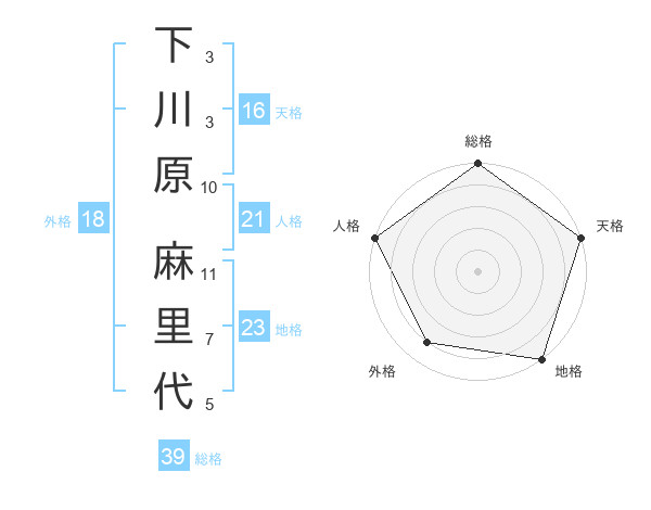 下川原 麻里代さんを姓名の画数から五運を鑑定