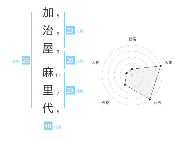 加治屋 麻里代さんの天格は23画の5点