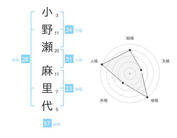 小野瀬 麻里代さんを姓名の画数から五運を鑑定