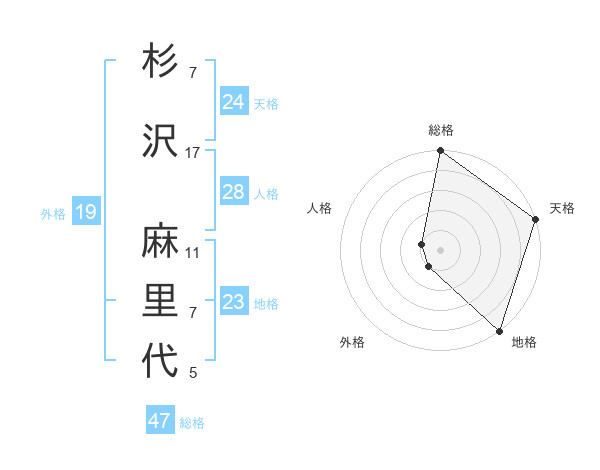 杉沢 麻里代さんの天格は24画の5点!