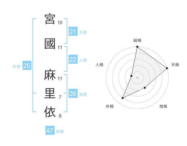 宮國 麻里依さんの総格は47画の5点!
