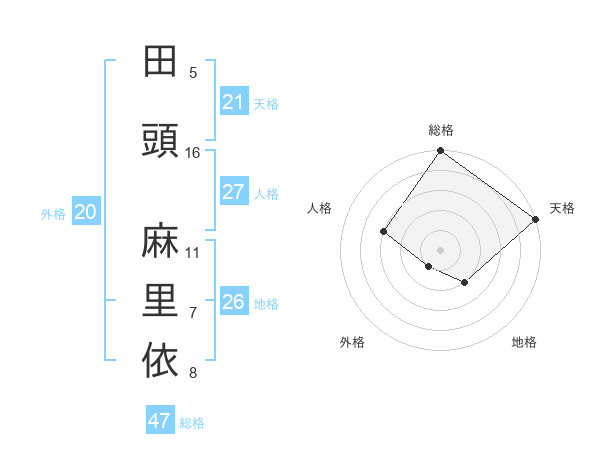 田頭 麻里依さんの総格は47画の5点!