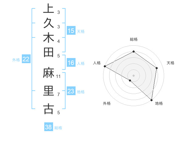 上久木田 麻里古さんを姓名の画数から五運を鑑定