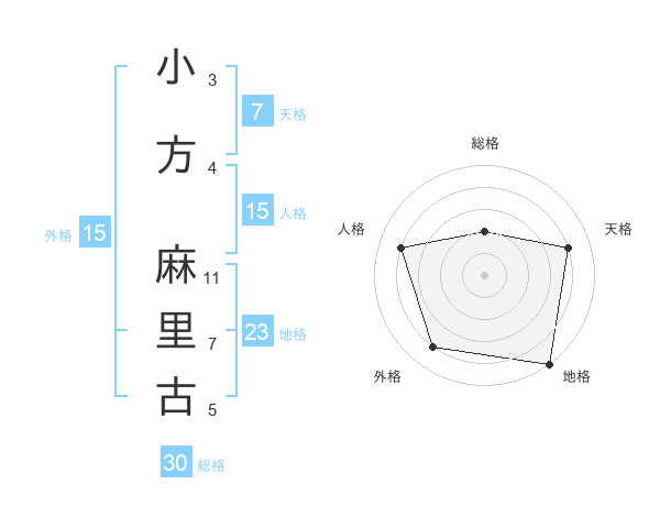 小方 麻里古さんの総格は30画の2点!