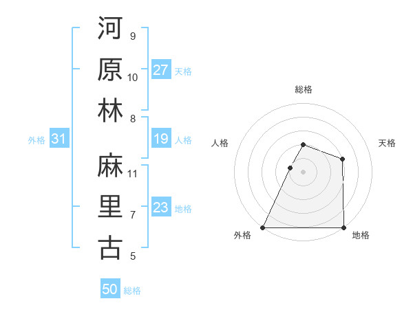 河原林 麻里古さんを姓名の画数から五運を鑑定