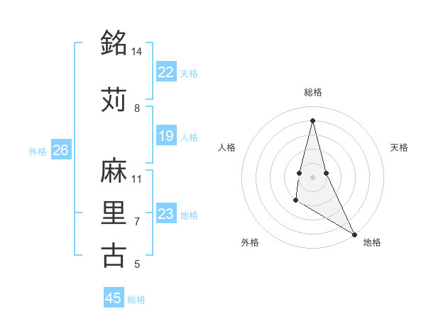 銘苅 麻里古さんを姓名の画数から五運を鑑定
