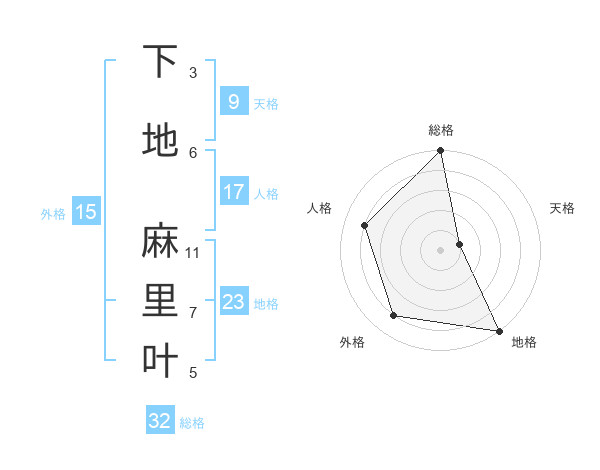 下地 麻里叶さんを姓名の画数から五運を鑑定